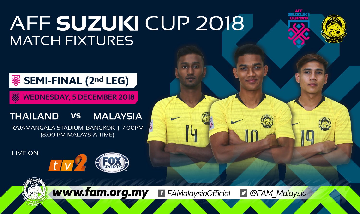 Fa Malaysia On Twitter 2018 Aff Suzuki Cup Wednesday 5 December 2018 Semi Final 2 Thailand Vs Malaysia Rajamangala Stadium Bangkok 7 00 Pm 8 00 Pm Malaysia Time Live On Tv2