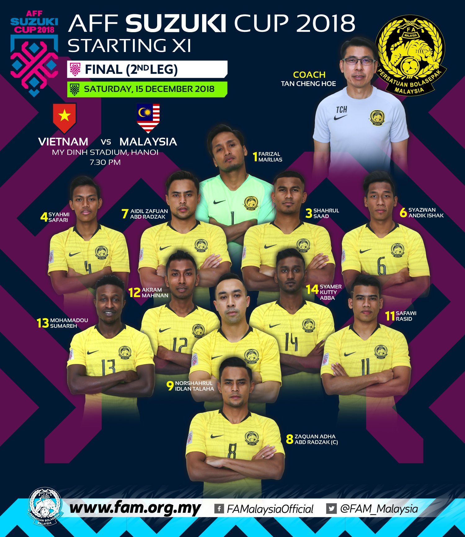 Fa Malaysia On Twitter 2018 Aff Suzuki Cup Final 2 Saturday 15 December 2018 Starting Xi Vietnam Vs Malaysia My Dinh Stadium Hanoi 7 30 Pm 8 30 Pm Malaysia Time Full Players