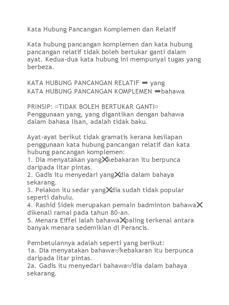 Kata Hubung Pancangan Komplemen Dan Relatif Pdf